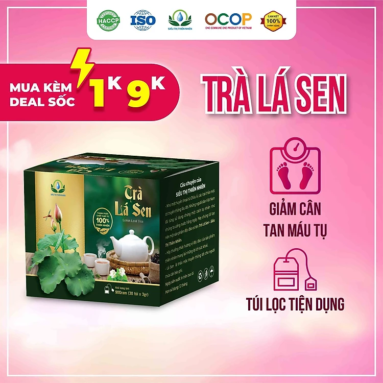 Đặc Sản Đồng Tháp - Trà Lá Sen Siêu Thị Thiên Nhiên - 1 hộp 30 túi lọc - OCOP 4 SAO