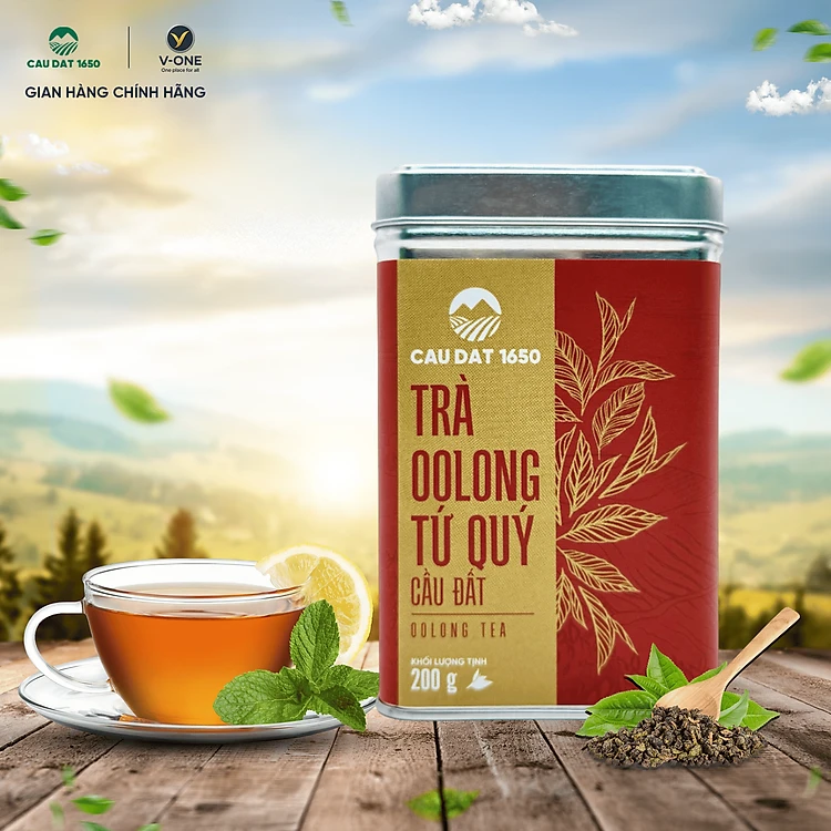 Trà Oolong Tứ Quý Cầu Đất 1650 – Hộp Thiếc 200g | Hương hoa & vị trà đậm đà