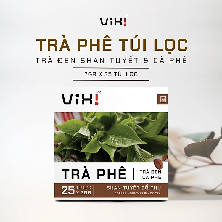 Trà phê túi lọc ViXi từ trà Shan Tuyết cổ thụ và cà phê Arabica hộp 50gr