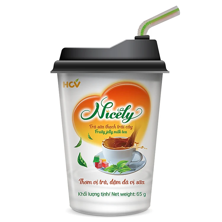 Trà sữa thạch trái cây Nicely Thành phần: Đường, bột kem không sữa, maltodextrin, bột kem sữa đặc 12%, bột trà đen 6%, sữa bột nguyên kem 5%, chất chống đông vón (E466), hương trà tổng hợp, chất tạo ngọt tổng hợp (E950). Có chứa đạm sữa. Chỉ tiêu chất lượng chủ yếu: < 5% Thông tin cánh báo: Không dùng cho người dị ứng các thành phần của sản phẩm. Không sử dụng sản phẩm đã hết hạn sử dụng