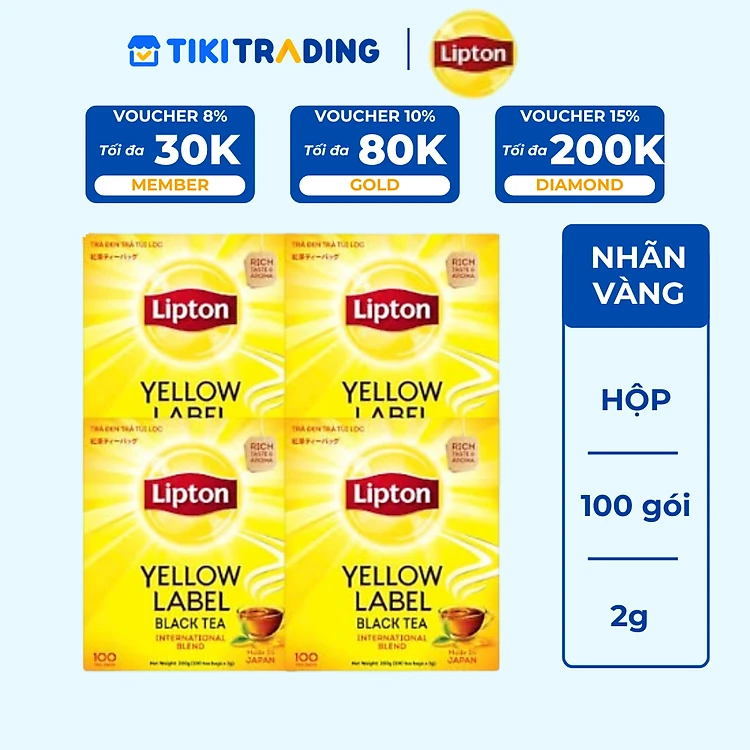 Combo 4 Trà Đen Nhãn Vàng Lipton Túi Lọc 2g x 100 Gói