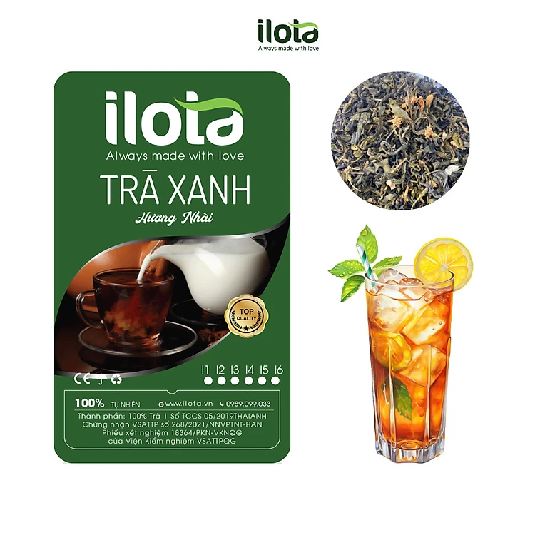 Trà xanh hương nhài ILOTA nguyên chất để pha trà hoa quả, trà chanh trà ủ lạnh 500g