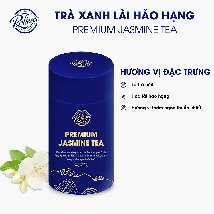 Trà Xanh Lài ROFFESCO PREMIUM JASMINE TEA Đậm Vị Trà Chát Thơm Nồng Dạng Lon 100G