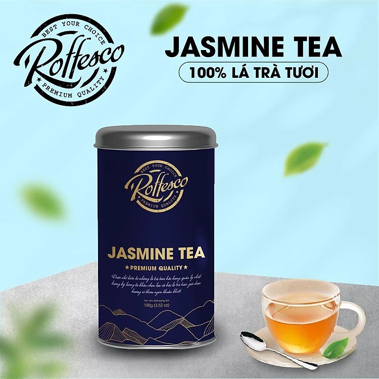 Trà Xanh Lài ROFFESCO PREMIUM JASMINE TEA Đậm Vị Trà Chát Thơm Nồng Dạng Lon 100G