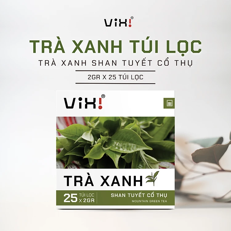 Trà xanh túi lọc ViXi từ trà Shan Tuyết cổ thụ hộp 50gr
