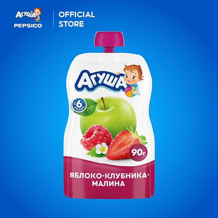 Trái cây nghiền vị táo, dâu tây và mâm xôi Agusha 90g dành cho bé từ 6 tháng trở lên
