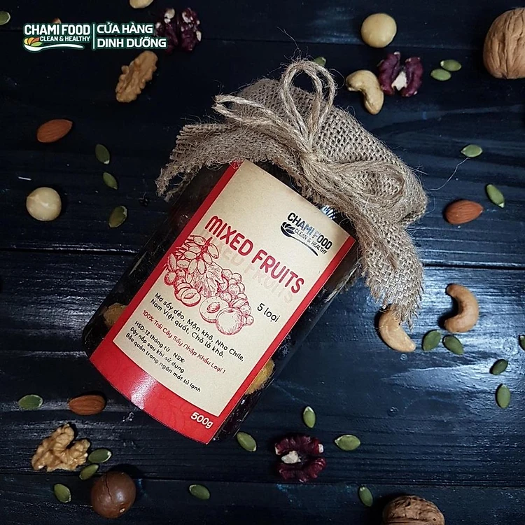 Trái cây sấy dẻo Chami KHÔNG ĐƯỜNG 500G Mix 6 hoa quả Mơ sấy dẻo Chà Là Mận sấy Nho khô Nam việt quất sấy Xoài sấy