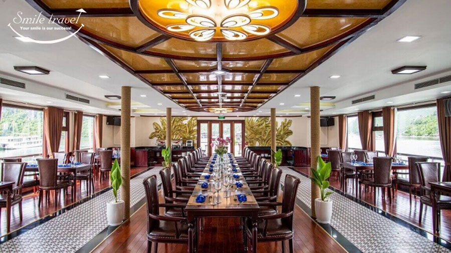 13:00 - 13:30 Thưởng thức bữa trưa tại nhà hàng. Trong khi du thuyền rời bến và tiến sâu vào khu vực vịnh Lan Hạ, Quý khách vừa thưởng thức bữa trưathịnh soạn trên du thuyền vừa thưởng ngoạn cảnh đẹp kì vĩ của Di sản Thiên nhiên Thế giới.