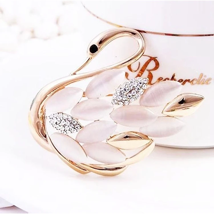 Trâm Cài Áo Nữ Quà Tặng Thiên Nga Đính Đá Trắng Trang Nhã Sang Trọng (Kèm Hộp Quà Tặng)