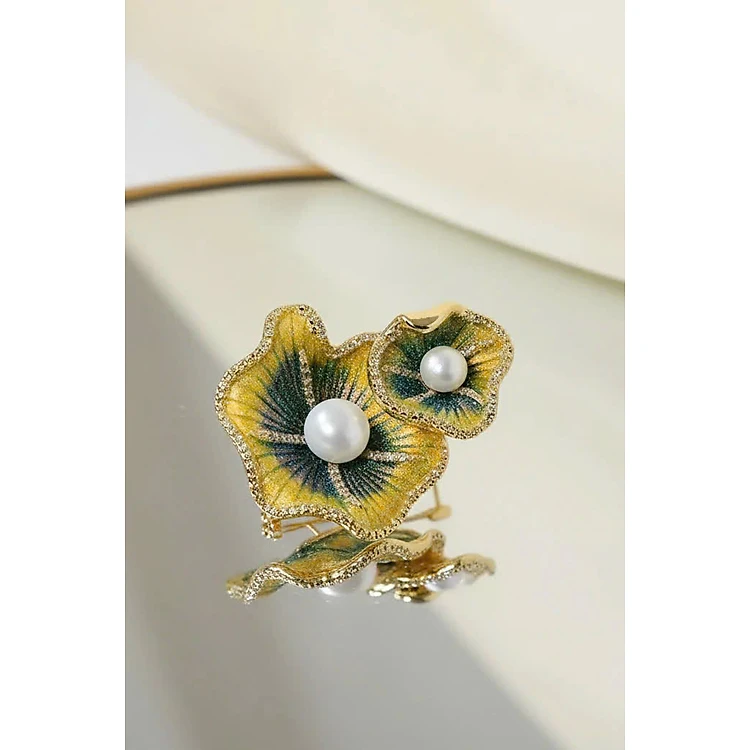 Trâm Cài Áo Vest, Áo Dài Đính Ngọc Trai Baroque Hình Lá Sen thời trang thiết kế Hity ACC436