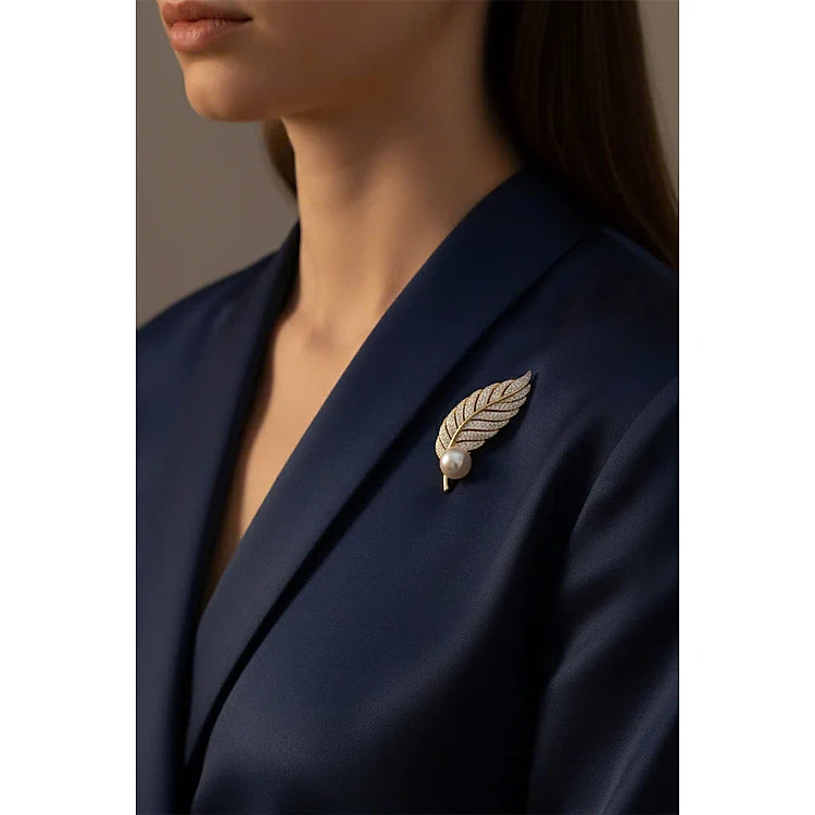 Trâm Cài Áo Vest, Áo Dài Đính Ngọc Trai Baroque Hình Lông Vũ thời trang thiết kế Hity ACC404