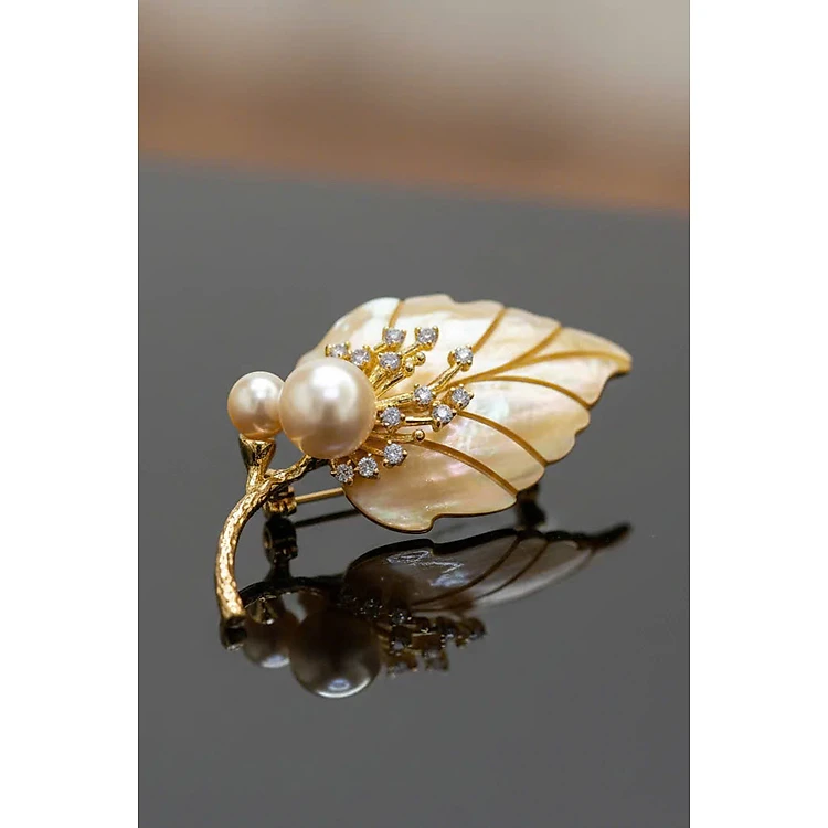 Trâm Cài Áo Vest, Áo Dài Xà Cừ Đính Ngọc Trai Baroque Hình Chiếc Lá thời trang thiết kế Hity ACC413