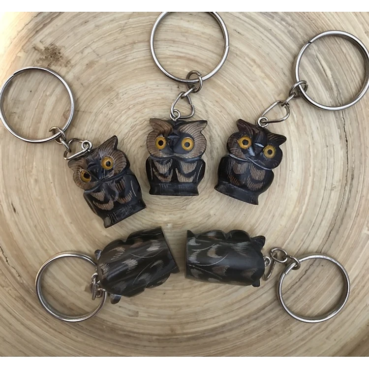 Combo 3 Móc treo chìa khóa cú mèo bằng Sừng trâu (OTH017) TỈA TÁCH RẤT ĐẸP