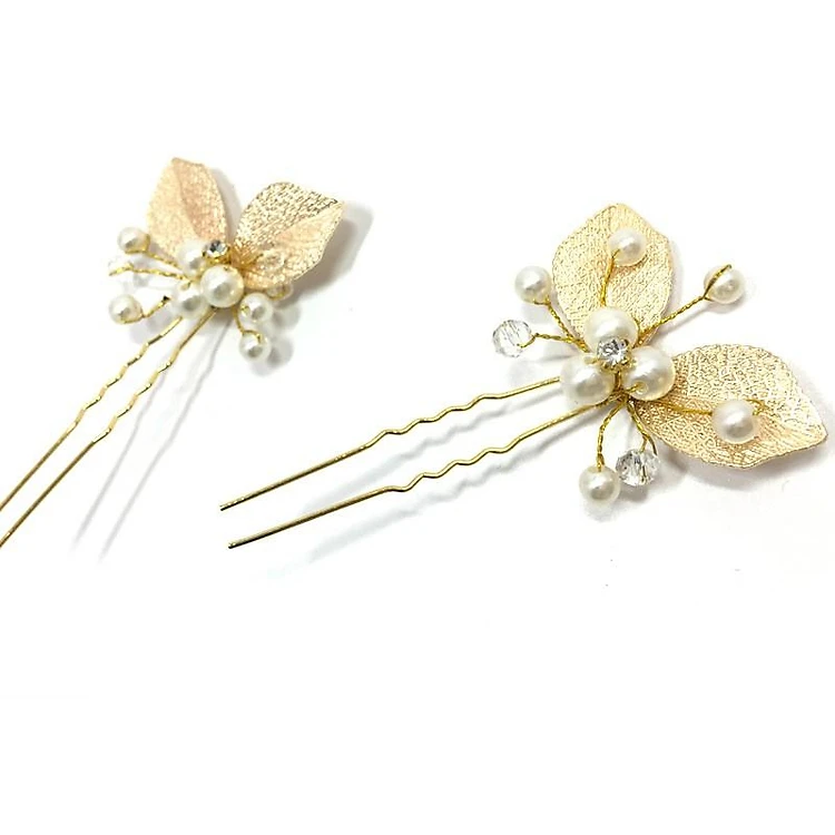 Trâm cài tóc cô dâu lá kèm hạt bẹt phụ kiện cưới Giang (1 cái )