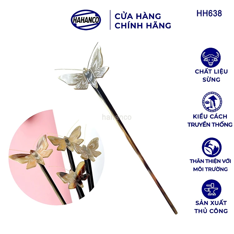 Trâm Cài Tóc Hồ Điệp Bằng Sừng HAHANCO Phụ Kiện Cài Tóc Cho Phái Nữ - HH638