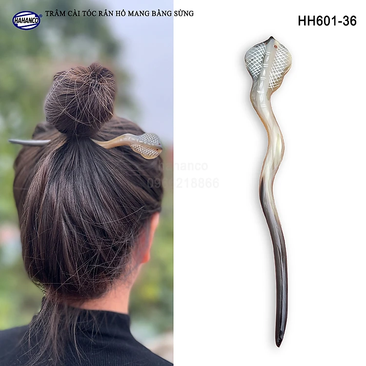 Trâm cài tóc rắn hổ mang bằng sừng - đục khắc hình đẹp - phong cách cá tính (HH601-36)