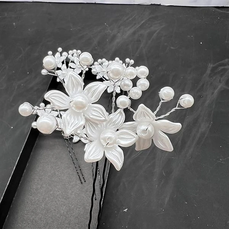 Trâm hạt trai hoa nhựa cài tóc Giangpkc 2022 trắng