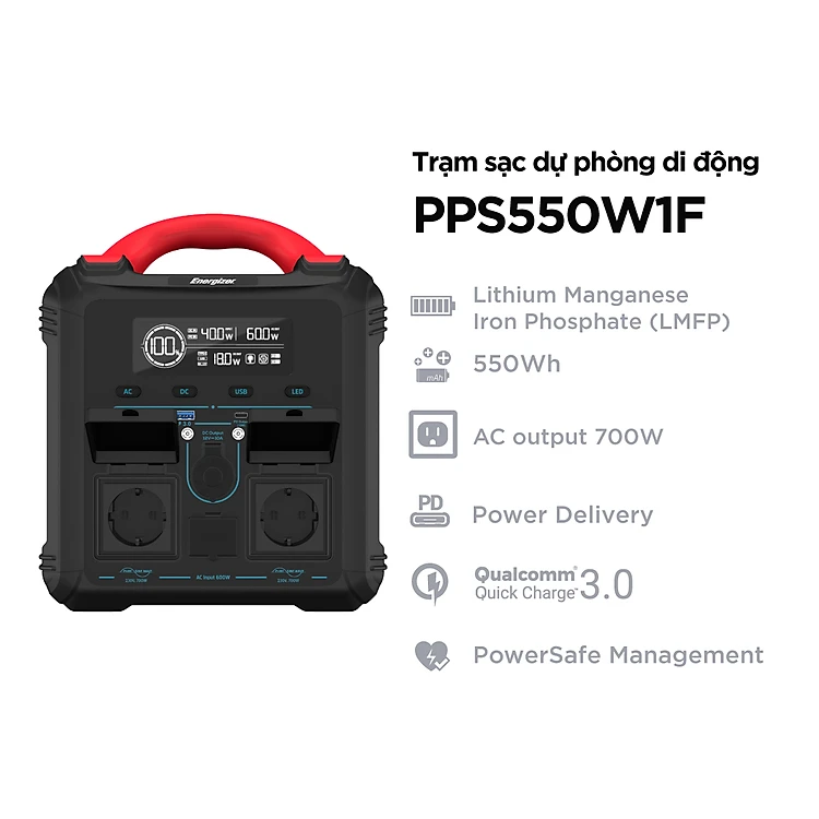 Trạm sạc dự phòng di động Energizer công suất 550Wh|700W, tích điện Gia Đình mang theo Du Lịch/Camping - Hàng chính hãng