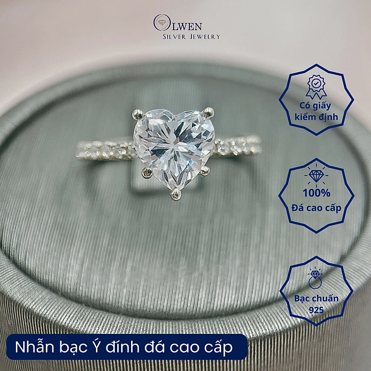 Trang sức Bạc 925 Olwen Đính Đá Cao Cấp Hình Trái Tim