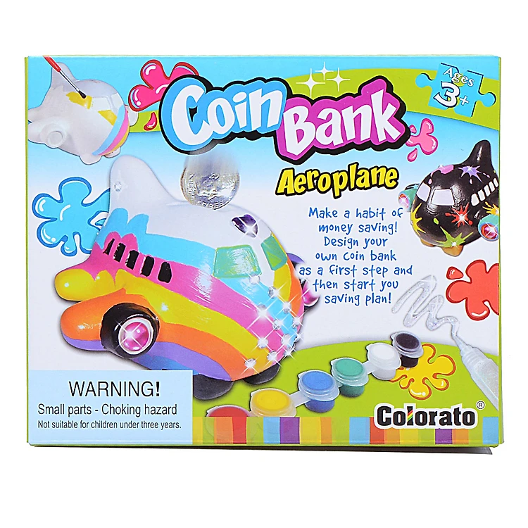Bé có thể trở thành một chú phi công bay lượn trên bầu trời cùng ống tiết kiệm hình máy bay. Với đầy đủ dụng cụ, bé có thể tha hồ trang trí ống tiết kiệm hình máy bay theo ý thích của mình. Thêm vào đó, màu nhũ và hạt cườm sẽ giúp ống tiết kiệm trở nên lấp lánh và cuốn hút hơn.