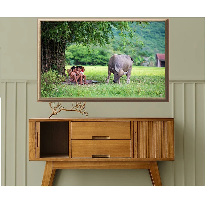 Tranh CANVAS Treo Tường CHỦ ĐỀ QUÊ HƯƠNG, CHĂN TRÂU, Tranh canvas thiên nhiên, có khung kèm, treo phòng khách, phòng ăn,, phong cách hiện đại PVP-PC06