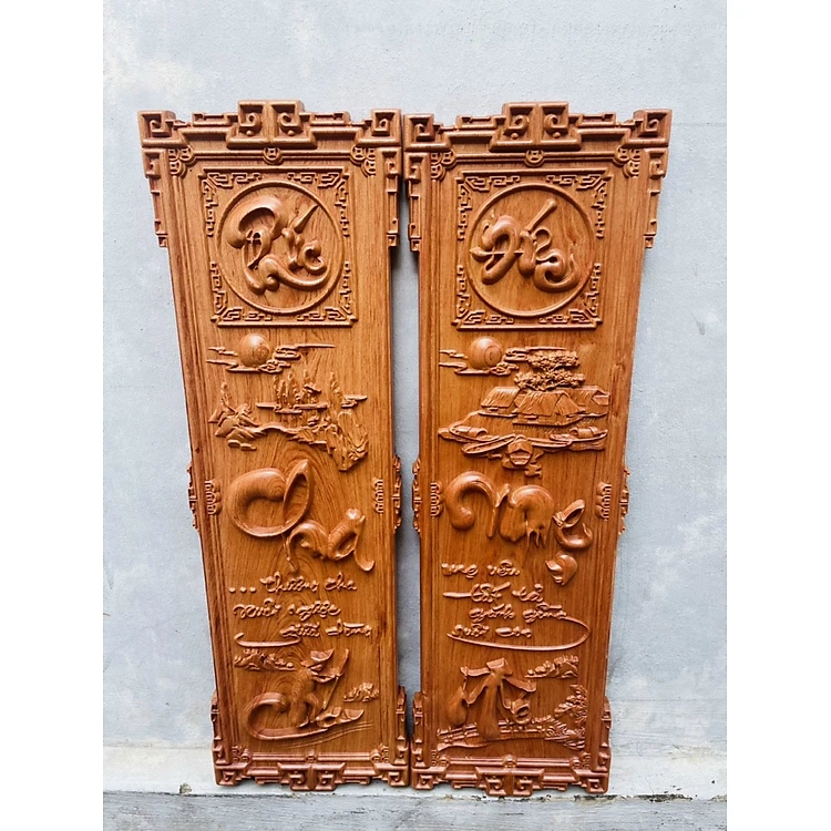 TRANH Cặp câu đối khắc chữ cha mẹ gỗ hương đá kt 30×97×3.5cm