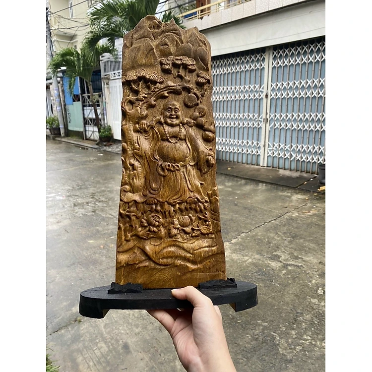Tranh chạm khắc phật Di Lặc bằng gỗ trầm hương
