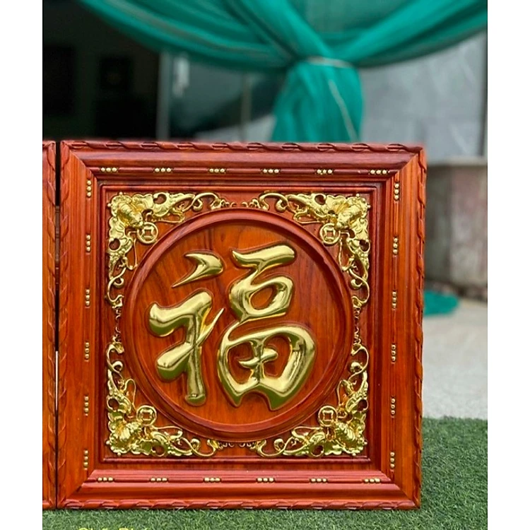 Tranh chữ phúc bằng gỗ hương đỏ kết hợp với sơn son dát vàng cao cấp kt 61×61×4cm