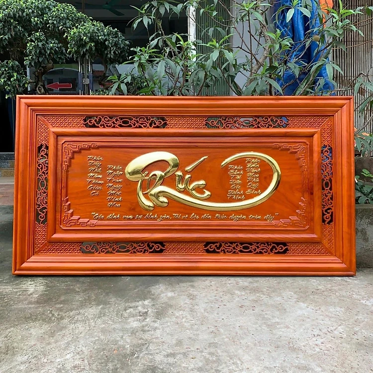 Tranh chữ phúc bằng gỗ hương đỏ kt 67×127×4cm