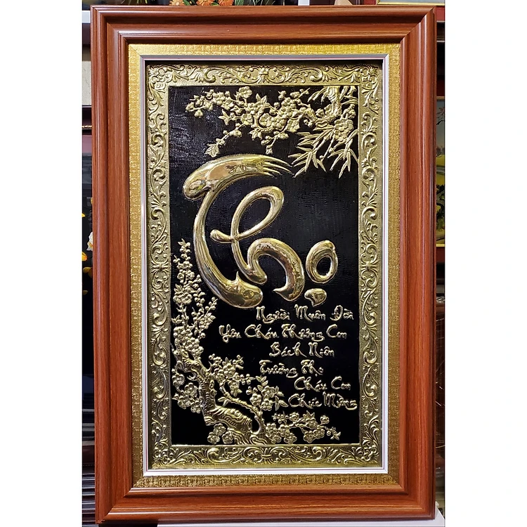 TRANH CHỮ THƯ PHÁP CHỮ THỌ BẰNG ĐỒNG VÀNG LIỀN TẤM