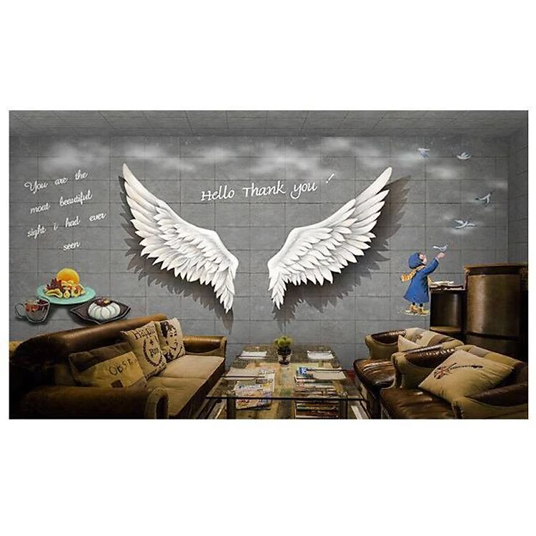 TRanh dán tường 3d đôi cánh thiên thần - ép kim, sa - có sẵn keo TB19