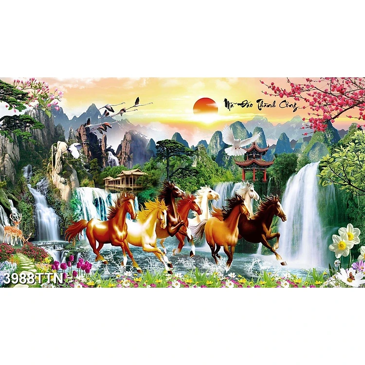 TRANH DÁN TƯỜNG 3D MÃ ĐÁO THÀNH CÔNG - TRANH DÁN TƯỜNG BÁT MÃ PHONG CẢNH - TRANH MÃ ĐÁO TRUY PHONG