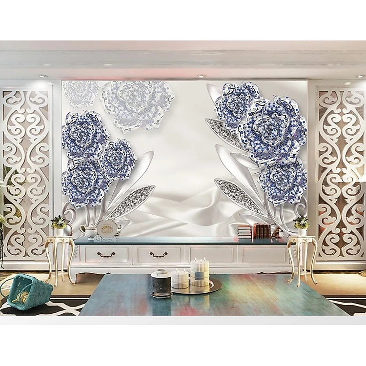 Tranh dán tường 3d,TRANH HOA 3D DÁN TƯỜNG CAO CẤP, Tranh hoa 3D, tranh lụa 3D dán tường,tranh dán tường phòng khách 3D PVP-TS012