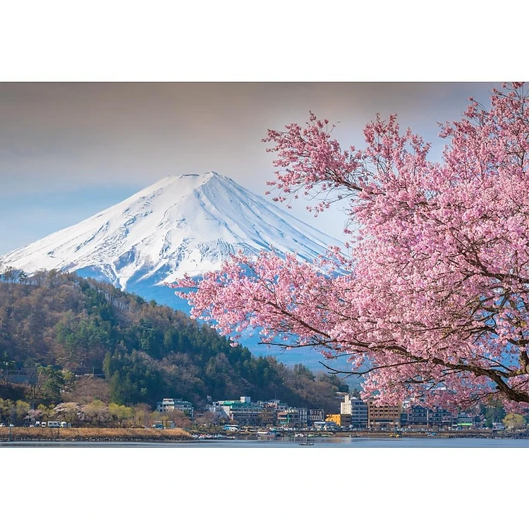 Tranh dán tường HD Cảnh đẹp hoa đào và núi Phú Sĩ HUD1692 kim sa
