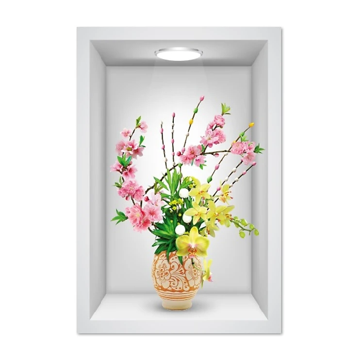 Tranh dán tường ô 3D lọ hoa đẹp 004 KT 40 x 60 cm