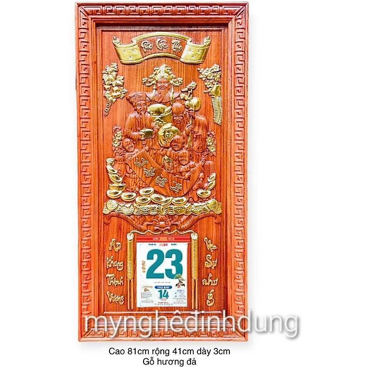 Tranh Đốc lịch khắc tam đa phúc lộc bằng gỗ hương đá kt 41×81×3cm