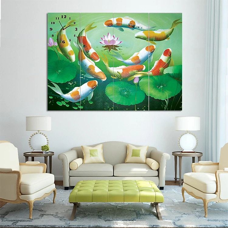 Tranh Đồng Hồ Cửu Ngư Quần Tụ Binbin TDH30 (60 x 20 cm)