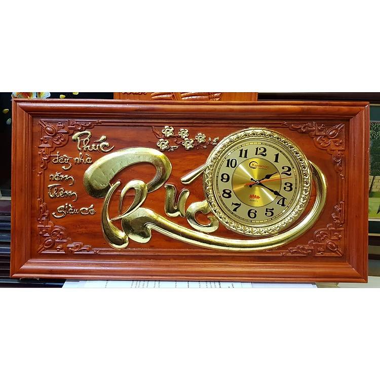 TRANH ĐỒNG HỒ GỖ HƯƠNG ĐỤC NỔI GIÁC VÀNG CHỮ PHÚC-TG278