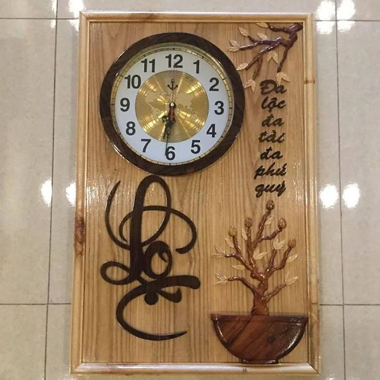 Tranh đồng hồ gỗ sồi  chữ lộc