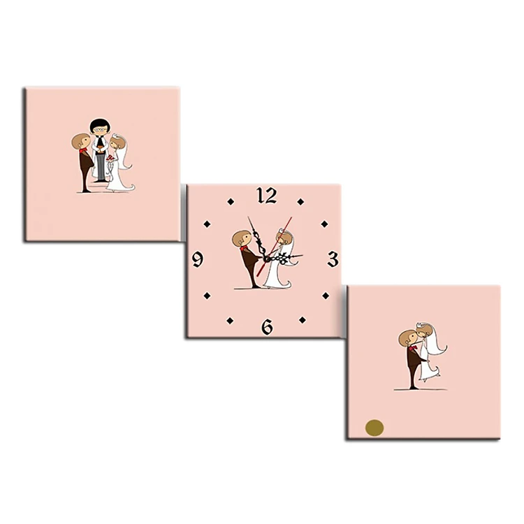 Tranh Đồng Hồ Happy Wedding Vicdecor - DHT0184 - 30x30cm là ý tưởng độc đáo kết hợp tranh và đồng hồ là một, chính là món quà dành cho cuộc sống đầy ý nghĩa, điểm tô cho không gian sống của chúng ta thêm đẹp, cá tính và độc đáo. Hình ảnh cô dâu chú rể hoạt hình với nét vẽ đáng yêu, thích hợp dùng tặng quà cưới hoặc trang trí phòng tân hôn.