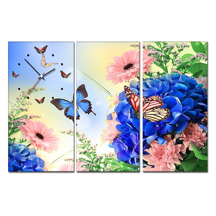 Tranh Đồng hồ Suemall HL150508 - Tú Cầu Hoa Bướm