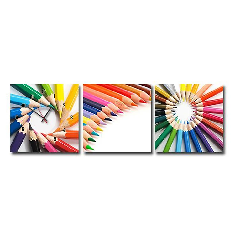 Tranh đồng hồ Suemall NT1281 - Bút Chì là ý tưởng độc đáo kết hợp tranh và đồng hồ là một, chính là món quà dành cho cuộc sống đầy ý nghĩa, điểm tô cho không gian sống của chúng ta thêm đẹp, cá tính và độc đáo. Sản phẩm đồng hồ tranh được làm từ những loại gỗ mịn cao cấp (Gỗ MDF Malaysia), phủ melamine có tính năng chống trầy cao, không bị biến dạng. Giấy in lụa cao cấp, in ảnh chất lượng cao, không bị nhòe ảnh, bể ảnh, màng bảo vệ bóng, mờ chịu nước, chống bay màu tốt. Sản phẩm tranh đồng hồ treo tường chất lượng cao, bền đẹp, được làm từ chất liệu cao cấp, cùng thiết kế tinh xảo, đẹp mắt chắc chắn sẽ tạo ấn tượng ngay từ cái nhìn đầu tiên nhờ một chiếc đồng hồ đặt giữa nền hình bút chì đầy màu sắc nhưng hoàn toàn không làm rối mắt khi xem giờ. Cả màu sắc lẫn những chất liệu nội dung cấu thành nên bức Tranh đồng hồ đều bắt mắt, nhẹ nhàng, trẻ trung và tươi mát, bộ tranh 3 miếng ghép như một món quà tặng ý nghĩa dành cho cuộc sống.