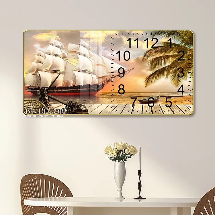 Tranh đồng hồ tráng gương thuận buồm xuôi gió 6 trang trí decor quà tặng tân gia