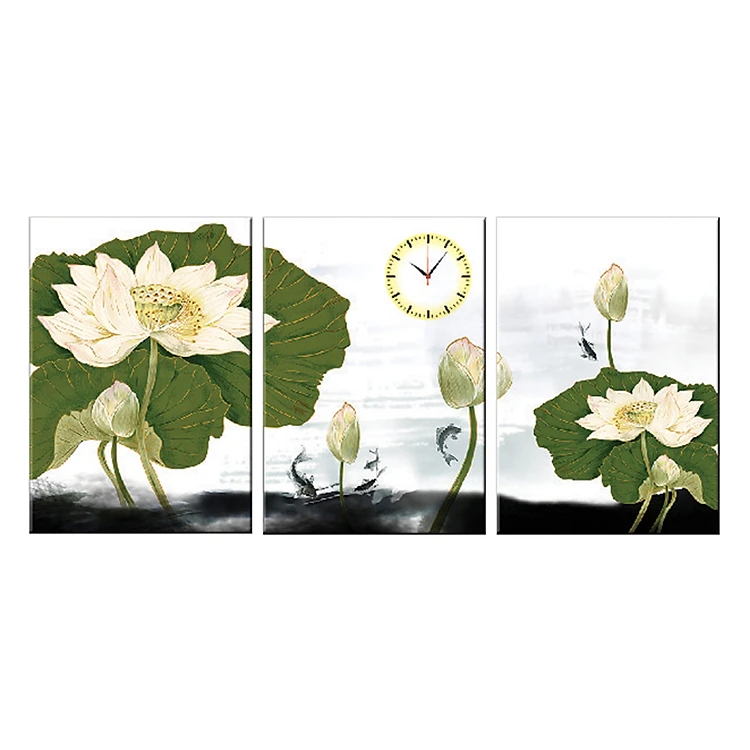 Tranh đồng hồ treo tường CÁ CHÉP DƯỚI LÁ SEN XANH - Q6D6_35DH(21) Thế Giới Tranh Đẹp