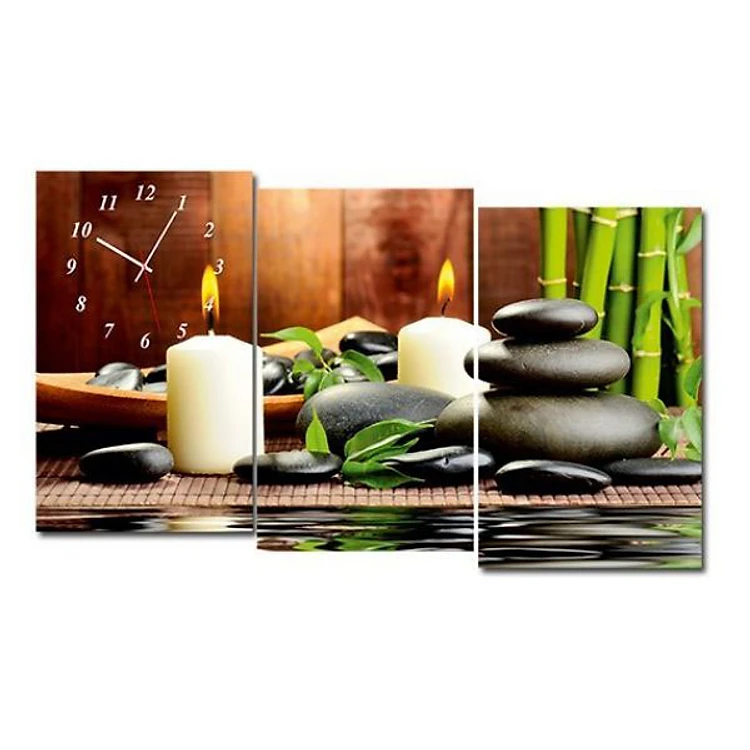 Tranh ghép 3 tấm treo tường ép lụa kim sa - tranh đồng hồ treo tường - tranh spa - tranh treo tường phòng khách - phòng ngủ - khách sạn - tặng kèm đinh 3 chân