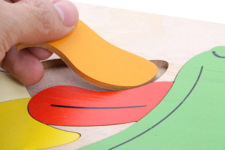 • Sản phẩm sử dụng những gam màu tươi sáng như: đỏ, vàng, hồng, cam,… giúp kích thích thị giác, tạo hứng thú cho bé khi chơi. Tranh có kích thước tương đối nhỏ gọn giúp bé dễ dàng hơn khi lắp ráp. Các chi tiết của tranh được bo tròn hợp lý không làm trầy xước da bé khi chơi.