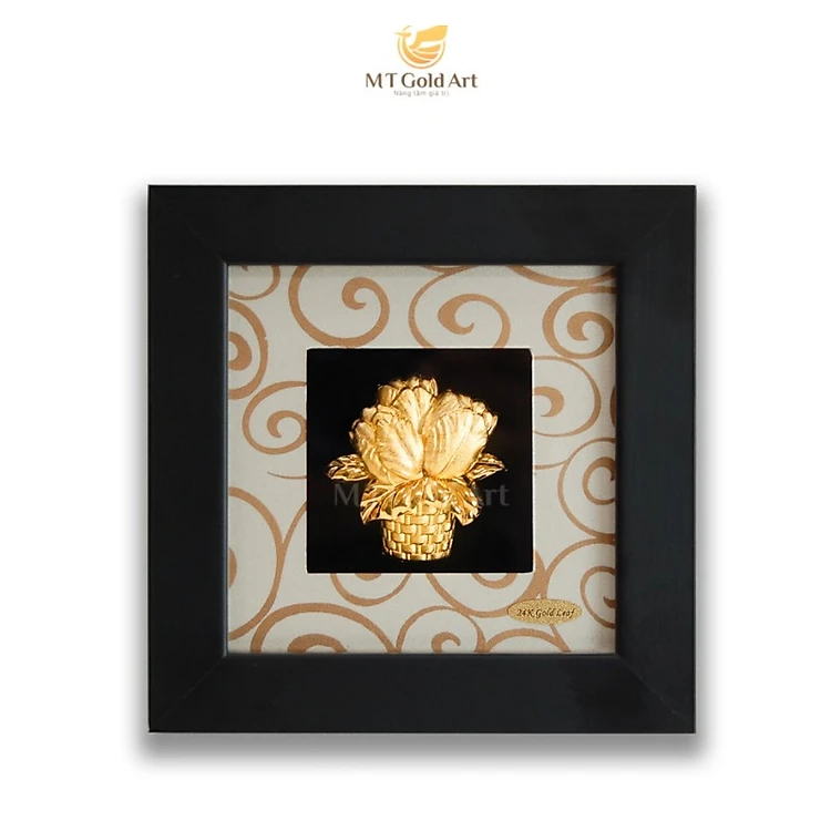 Tranh giỏ hoa tulip dát vàng (13x13cm) MT Gold Art- Hàng chính hãng, trang trí nhà cửa, phòng làm việc, quà tặng sếp, đối tác, khách hàng, tân gia, khai trương