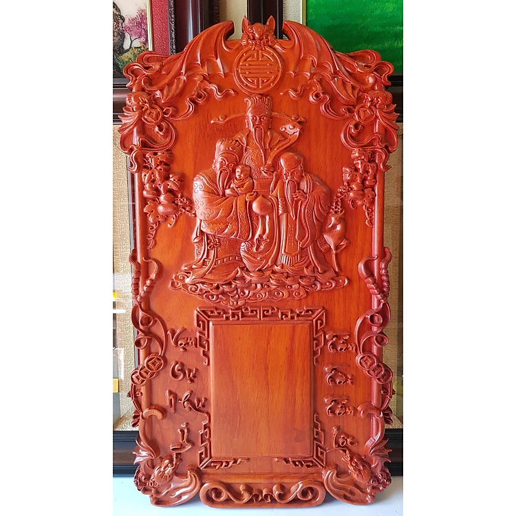 Tranh gỗ hương liền khối đục nổi nghệ thuật-Phúc Lộc Thọ-tg094