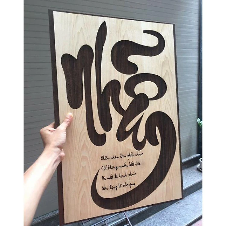 Tranh Gỗ Treo Tường Thư Pháp Chữ Nhẫn 40x60cm
