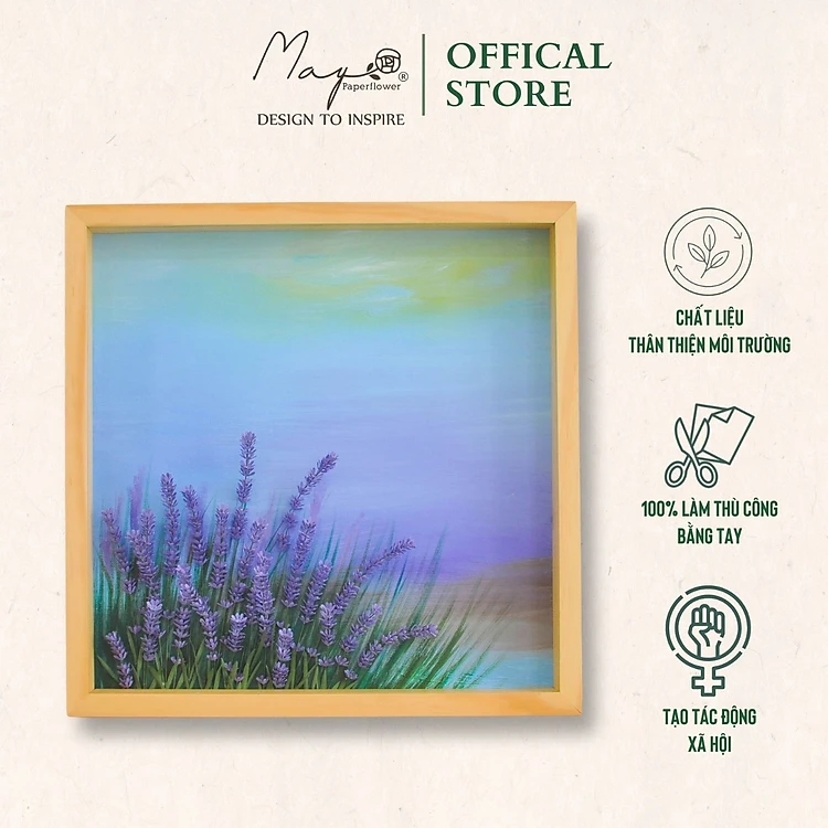 Tranh hoa giấy handmade trang trí cao cấp ROMANCE Lavender Field 40x40 cm - Maypaperflower Hoa giấy nghệ thuật